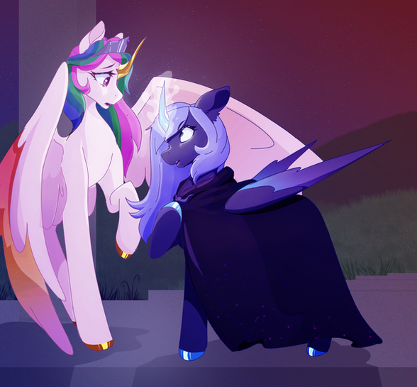 Not directly - since I am not very sure of what people might think about that - but in my mind it is. I want them to gain mutual appreciation towards each other after the events of this picture. What I mean by mutual is that Celestia is aware of who the other person really is, too.Β