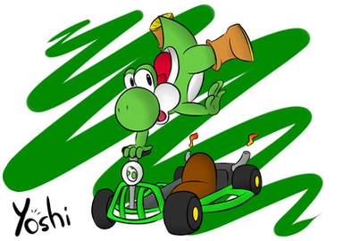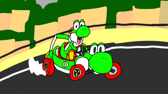I play as Yoshi when I'm harangued into playing MarioKart 64 myself. Either way, major props for the simple but very well-done go-kart and nice job on Yoshi's breezy expression! Keep at it!