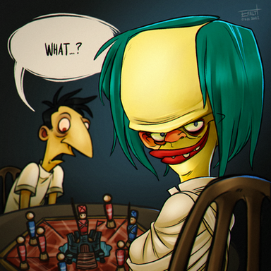 "I kinda wanted to draw more of the other Psychonauts characters and got this idea while striking that "lion king" pose thing with my rabbit.At this point I no longer know what I am doing. But I had a balst working on this one. It basically resumes the first game. To me at least~"