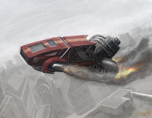 This is the result of playing around in the forums @ CGSociety. The theme was an antigrav vehicle that drew from car and plane designs in the early 20th century. Hope some of you like it.Created in Photoshop with basic brushes.