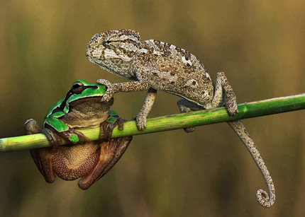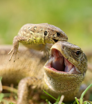 Awwwww! Lizard love <3 They both look so cute and the Brown (Gal?) Looks so happy or excited!