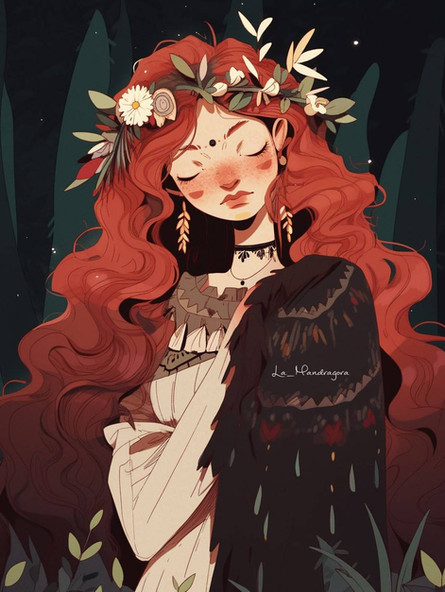 Once upon a time, deep in the heart of a dense forest, there lived a red-haired witch named Freya. She was known throughout the land for her magical powers and her ability to control the creatures of the forest.