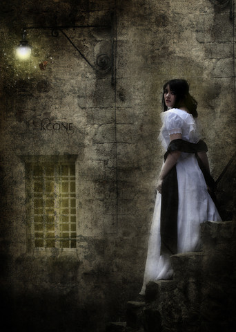 Is the woman in this image crying or praying? And what is the big slug doing in this picture?