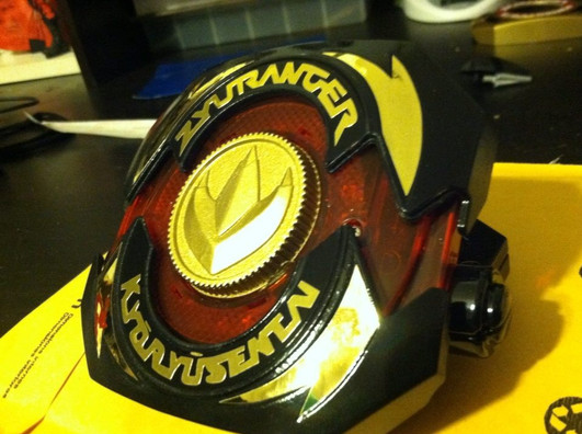 6. Once the morpher is dry, you can add the decals. Order them from blinddrummer15 on Rangerboard. I got the MMPR TV ring, with green bolts, but you can get whatever you want. Decal sets are $10.