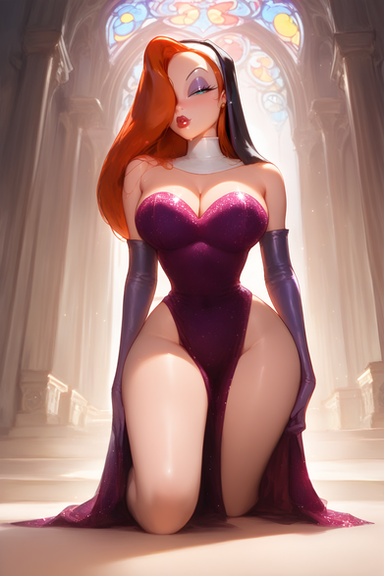 #fanart #redhair #digitalart #cartoon #characterdesign #digitalpainting #hugebreasts #sexygirl #cosplaygirl #jessica_rabbit #nun_costume