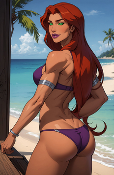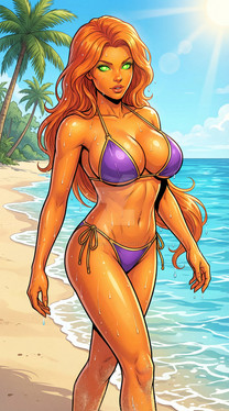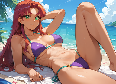 #fanart #videogamefanart #digitalart #cartoon #beach #anime #characterdesign #animegirl #portrait #redhair #aliengirl #bikini #dccomics #starfire #starfire_teen_titans #redhoodjasontodd