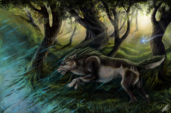 Wow! I really like dark fantasy wolf art. Love the colors! You've got skill.