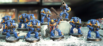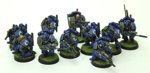 Brand new Squad from the Indomitus box.Too new for a melee unit, so I 'banged them up' a little, changed some poses to avoid duplicates and made me a deputy team leader (for when I need to split the squad in two).