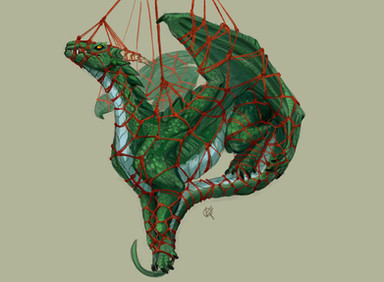 #confused #forest #horns #kobold #red #ropes #scales #winged