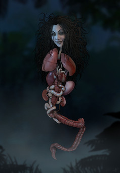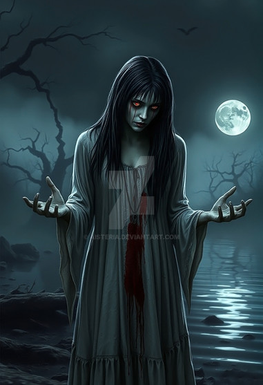 The banshee is a female spirit from Irish folklore who heralds death with her wailing and keening. Although in more modern tales she is a general harbinger of death or an evil spirit that hunts and kills her victims with her terrifying screams or red-eyed stare, she is actually bound to the descendants of the pure Milesian stock of Ireland (surnames prefixed with O' and Mac), and it is even said that each family has its own banshee. She is connected to the mounds of earth scattered about the Irish countryside, that are known as Tumuli. These Tumuli traditionally covered graves and were said to be home to spirits of the dead. She can appear in many forms, ranging from a sweet singing virgin, to a withered hag, however no sooner than she is spotted, she will vanish into a cloud of mist, which is accompanied by a noise akin to that of a birds flapping its wings. Although she is closely linked to death, the Banshees does not herself cause death, but only serve as a warning of its approach. There are tales of her throughout history, where she appears throughout Ireland and Scotland, even with references to her in Norman litrature