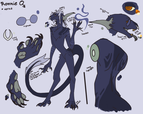 Ridley, once named Yuriah, was originally an outcast from his home planet. He grew up different, with different values than his species as a whole, was labelled as a 'coward' and was shunned for his general disinterest in violence. As a juvenile he was revered for his charismatic disposition and personality among his peers, but once it came time for him to adopt a more militaristic lifestyle as an adult, he refused. It was banishment or execution for him, and so he gathered his pride and fled, taking solace on the landfill of a planet called 'Earth'; relocating in the small country of The Netherlands and making his home in Amsterdam.