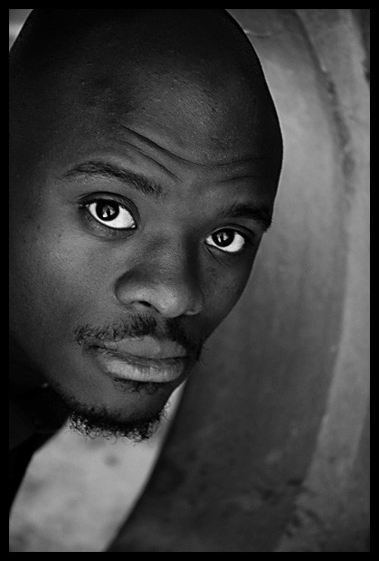he looks a lot like cillian murphy. great shot, i love the b&w and his gaze is really intense. i also like the lamp in the background