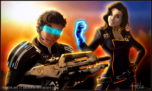 If I may make a critique: perhaps Ashley should be wearing the blue hardsuit. If only to better fit the theme of this piece (having the characters wear combat armour)