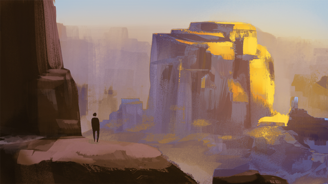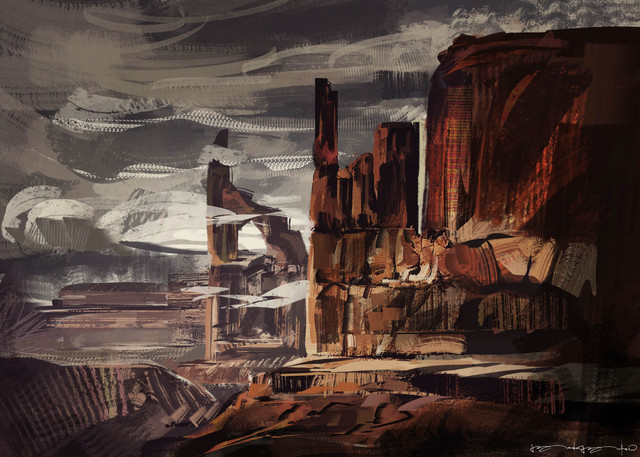 Great lighting and composition ; the lighting reminds me of some creepy mystery, but the composition reminds me of Wile E. Coyote stuff xD