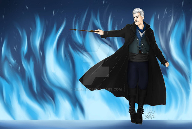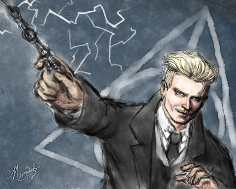 Ooh I love it! The colours are beautiful, and I love how you drew Grindelwald and the pose he took! Great job!!