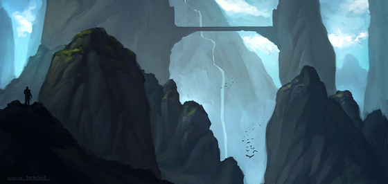 Hey, thanks for the tips, man! And I'm glad that you find my work inspiring. But yeah, I agree with the rocks. Totally. I'll have to study some references for that-- and the bottom probably should be darker. I should've added a dark gradient going from the bottom to the top as light. That might've done it. Thanks for the comment! Keep doin' what you do too, you're improving constantly. ^^