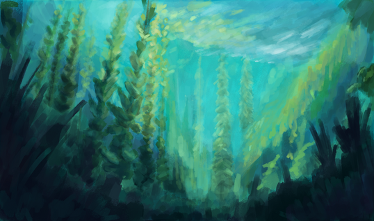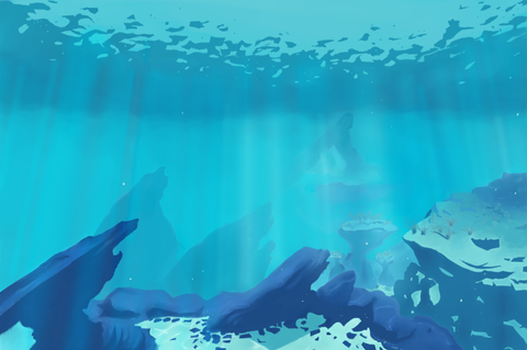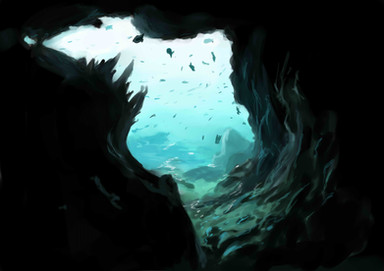 This looks really great! Out side of the painter's view I can offer a few tips to you i hope that are helpful, I agree with von, the rocks you did make it look more like a mountain still, try different rock shapes and stuff and this kinda looks more like the top of the ocean with all the light i know i could imagine this was hard to make it with being able to see anything it had to have light honestly the color looks nice to me just maybe little darker at bottom?? in any sense though your pictures keep inspiring me to keep trying!