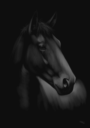 I love the beautiful profile and the expression of the mare, and the lighting adds a nice touch ~