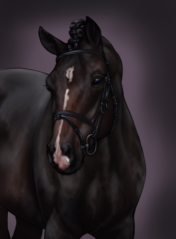Another overdue request for KosciuskoPart of my advertising project, I completed a portrait of Dreami's character Elinya, a beautiful grey mare. The actual ad is snow themed, however I wanted to show the original art as it is, since I am rather proud of how it turned out