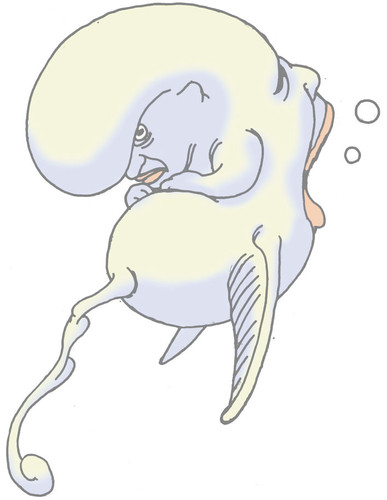I love the eery colours on the water person, the way the eyes pop from the darkness, creating a monstrous visage.