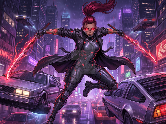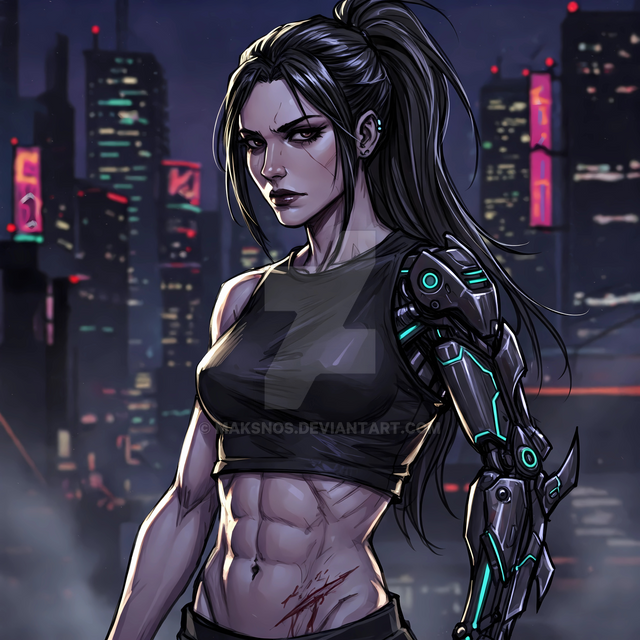 #fanart #characterdesign #scifi #cyberpunk #warrior #martialarts #razor #rpg #shadowrun #streetsamurai #fiercebeauty #shadowruncharacter #martialartistgirl