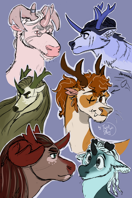 I had this grand idea that I would make a massive group drawing of all my characters before I posted anything else on here. It took far longer than I expected it would, and then my ipad said no to huge files and then I had issues transferring it over to computer and then I said screw it, I'm just going to split into two separate files hahaha. So here is part one of the group shot I had in my head to draw and this is officially the first artwork I've posted on here for like 2 years ohh lordy. I feel like I am allowed to post my other stuff over here now though, so I'll chuck a few more up here later onI am much more active over on instagram right now fyi. I am trying, but I honestly still can't get used to Eclipse at all and miss old DA