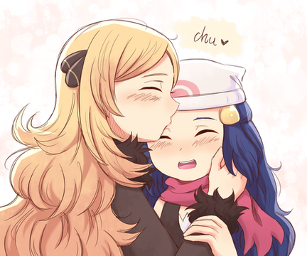 It's just that the artist's gallery is mostly made up of characters in romantic/sexual scenarios, and there is one where Cynthia is blushing with a nosebleed next to Dawn. Maybe I just got the wrong idea.