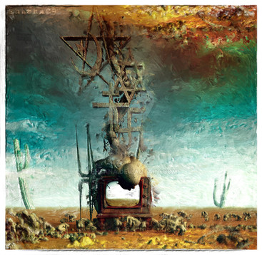 I get the feeling most models in this image are imported to make the scene more interesting and the initial scene being based on a procedural displacement texture, not that this 'feeling' is negative, but it reminds me of how some scene's of mine are completed: you start of with a cool finding (a nice concept, a great material, whatever) and than you add up to the scene.