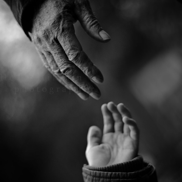 It is like a mirror of youth to elder. The hand shapes and pose are so alike. Beautiful and sweet family picture.