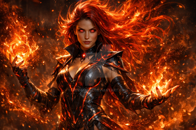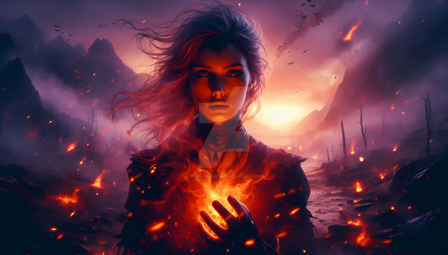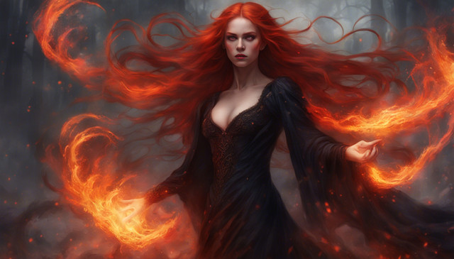 #digitalart #characterdesign #videogamefanart #warrior #magic #fantasyart #sorceress #ai #dreamup #fantasycharacter #witch #mage #burning #firemagic #redhairedgirl #witchcraft #witch_girl #sorceresswitch #ai_art