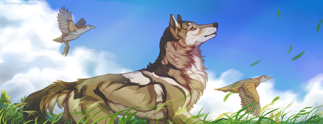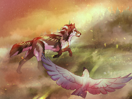 #birds #clouds #companion #flight #raven #sunset #wolfbird #wolfcharacter #wolfcommission #wolfych #canineych #wolfart #yourcharacterhere #yourcharacterherecommission #yourcharacterhereopen