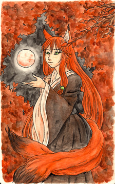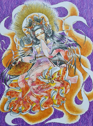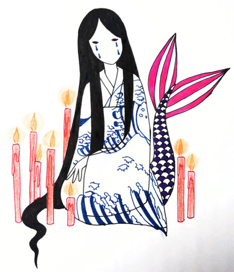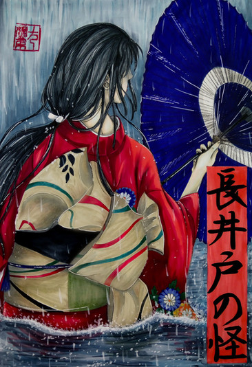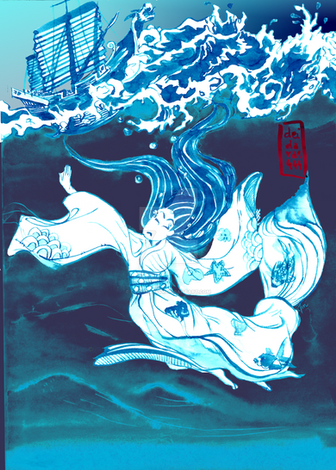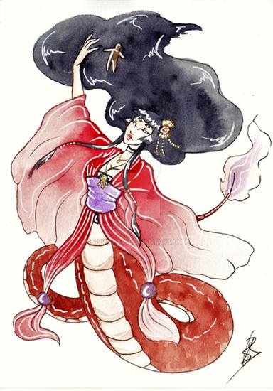My brother got a book about yokai for christmas and my, japanese folklore is so rich ! The book contains presentations of around 500 yokai and it doesn't even mention the gods or legendary heroes ! I've only browsed the book but I really loved this legend so I decided to draw her ^^There is another Hashihime at Uji river but this one turned into a yokai after dying with the resentment for her husband who had left her for another.