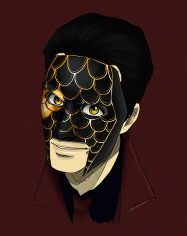 Holy Moly Lady!!! What have you DONE?????!!!! This character is just way too cool, elegant, pretty, detailed, and there's a fricken bird skull with lace and flowers!!!! And the color contrast!! The reds and blacks are beautiful! Along with her eyes!! Her eyes are just way too pretty and sparkly looking too