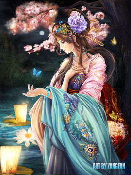 Another part of this work of art that I love so much are the glowing butterflies flying out of her hands. They are drawn perfectly and colored amazingly.