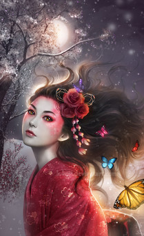 I love everything! Her eyes, the butterflies, te dark colour over her, her hair, The flowers on her head... you really make her beautiful.