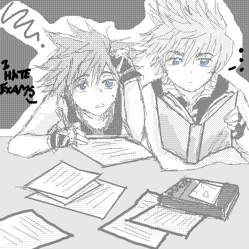 Poor Dem-Dem, Roxas, and Sora! Axel should've been in there, making his test into a paper airplane XD Or is Axel the teacher...?
