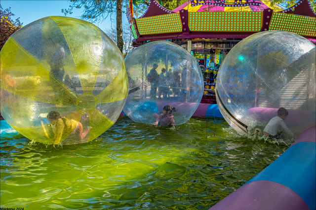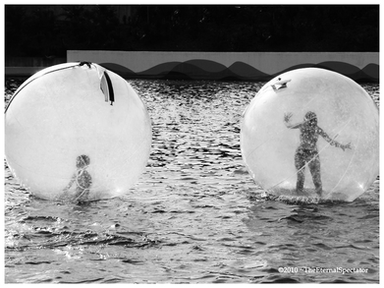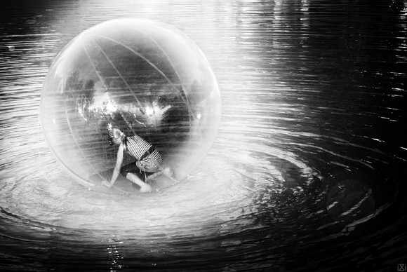 #attraction #bubble #funfair #funride #girl #joy #water #blackandwhitephotography #squarephotography