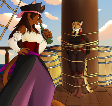 Just a bit of good fun between me and with his pirate girl Rebecca getting the better of dear ol' Amaretto, here seen as a Navy Commodore rather than a bold explorer/Rogue Trader/insane Vicerine. We figured the two would make the best of frenemies