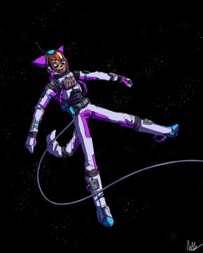 Supernova is a galaxy racer, competing in intergalactic spacecraft races. She's known as the Space Rabbit Racer, being able to 'jump' from place to place. The circular coils on her suit, help her to move through zero gravity, letting out bursts of energy to propel her in different directions. On the racecourse she is known for her agility, speed, and improvisation, making her a dangerous competitor.