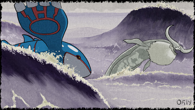 "If you asked yourself why Wailord makes a wave even if he's totally not hitting the surface, cinsider this is the pokemon world and so eh jsut simply pulls the water to himself so the wave can be greater! ..yes xD"