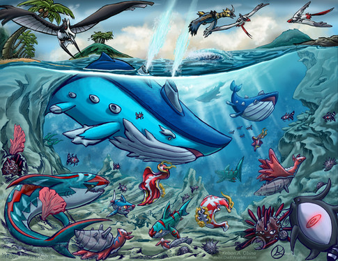Sieht toll aus, vor allem Wailord in deinem Stil und der Schaum auf den Wellen ^^