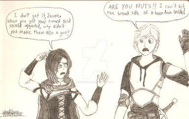 Here's your small graze! ( arrows her in the knee) now go be a guard!