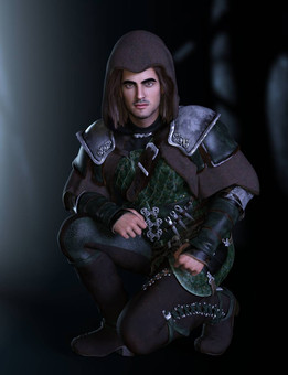Wow he is gexy big time. I love the way is face is hooded. The cast off color from his tunic is awesome the way it colors his face. The intent look in his eyes says he is targeting his prey. The way he is drawing that bow says he doesn't miss. So intense and arrow straight he's perfect. Kudos again.