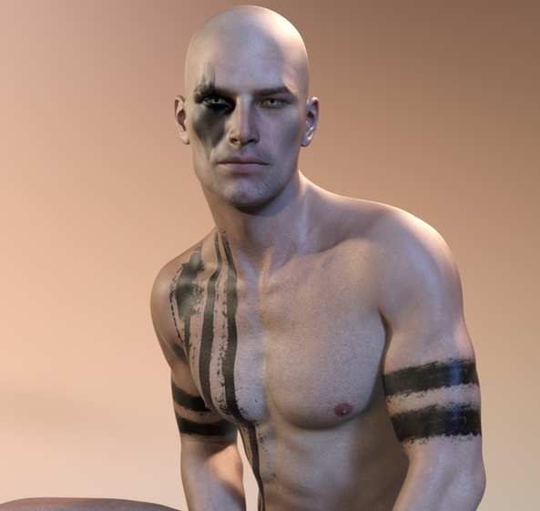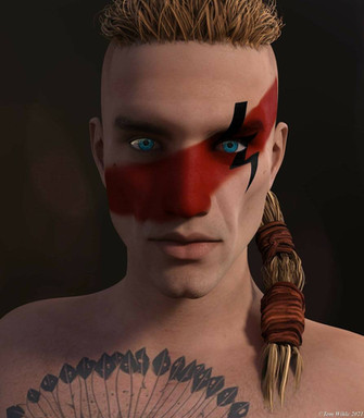 Ah the savage heart still beats and lives. He is gexy. Love the painted markings. His facial markings accent how aristocratic his features are. His eye coloring is unique in that it's hard to know if they are green or yellow of cat's eyes. Whether he be warrior or king he shows how regal he is. Powerful, ever watchful, just plain majestic. Kudos Sweetie
