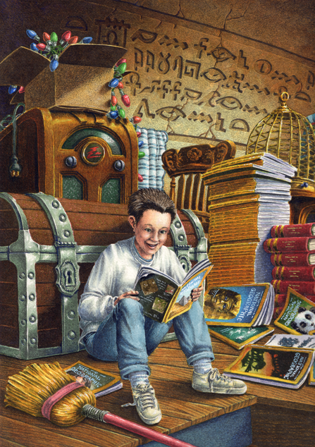 Thank you for the comment. Yes, he is under a book but it isn't a specific one. I left that up to the viewer but since the cover was supposed to be for the University, I felt that the book was much more effective than a normal tent.