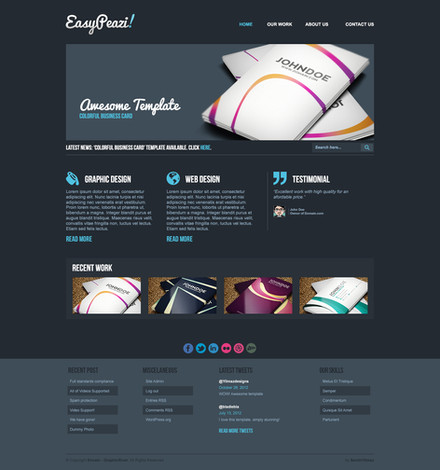 Yes, I get it. You think that someone invented the logo aligned to the left, the menu aligned to the right...a slider with some intro text above it. Oh wait, a 4 column content area based on a grid system, never seen that before either.