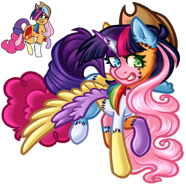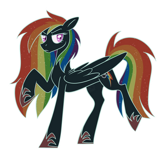I did a quick sketch of manacle one time to figure out how I want her pseudo-nightmare state to look, wound up loving the colors of her undarkened mane and her fruit punch wing gradient so y'all get to see it too. There's versions of her as a full nightmare and alicorn as well but this is the one with the juiciest colors so this is the one you're getting.Related content