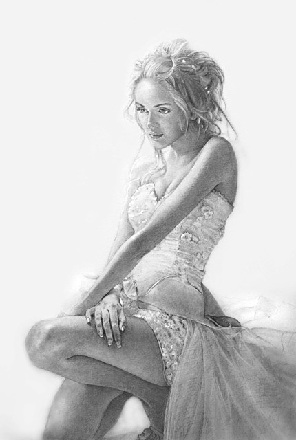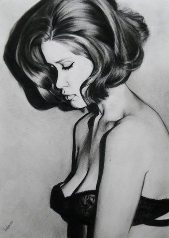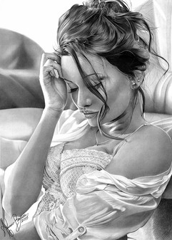 Very nice drawn.Β the model is sensual and beautiful, and the drawing is delicately shaded, and with a clear and thoughtful look in her eyes