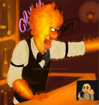 Leaf, I gotta say one thing about your undertale shit that I appreciate the hell out of and that's the fact that you actually have Sans open his freaking mouth. Also, Grillby looks like such a fluffy boy even though petting him would hurt