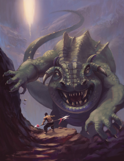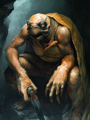 At first look he looks threatening. Then I notice he might be approaching the viewer but appears to be pointing back to the cave. You're calling him a "trog" it makes me think "dog in a troll's body." What is it, boy? Timmy's trapped in the cave?